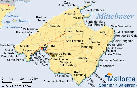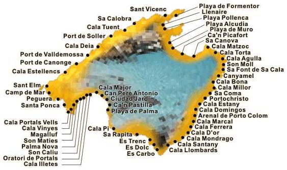 Im Westen liegt das Naturschutzgebiet "La Albufera", Playa de Muro (2 km), Puerto de Alcudia (11 km), Port de Pollença (22 km) und Formentor (31 km), alles dem Tourismus erschlossene Gebiete. Das Gebiet mit der grössten Ausdehnung ist Puerto de Alcudia, und das am wenigsten erschlossene, Formentor. Am äusseren Ende der Bucht befindet sich das Cap de Formentor in atemberaubender Umgebung und mit aussergewöhnlichen Aussichtspunkten, das über eine Strasse leicht zu erreichen ist. Im Landesinneren liegt das von Anbaufeldern umgebene Dorf Santa Margalida, ursprünglicher Wohnort der Bevölkerung der Gemeinde. Palma liegt 54 km entfernt. Die Hälfte der Strecke ist Autobahn, die in ihrem Verlauf die Inselmitte durchquert. C'an Picafort ist ein touristisch erschlossenes Zielgebiet mit einem bedeutenden Hotel-Angebot, hauptsächlich am Strand. Aber im Gegensatz zu vielen der Zielgebiete, die während der letzten Jahrzehnte entlang der Strände der Insel entstanden sind, ist C'an Picafort nicht nur ein Urlaubsort, sondern ausserdem ein Dorf, mit den Eigenschaften und dem normalen Tagesgeschehen eines kleinen Küstenorts. Seine Geschichte ist seit 1860 urkundlich belegt. Der älteste Stadtteil, mit seinen einfachen Häusern mit grossen Terrassen, entstand und entwickelte sich an der Hafenmole, an jener Stelle an der sich heutzutage der Yachthafen befindet. Wie wir schon erwähnt haben, ist die Einkaufszone der Paseo Colon, vor allen Dingen sein westlicher Abschnitt mit breiten, palmengesäumten Bürgersteigen. Der Hauptbetrieb dort findet gegen Abend statt, und breitet sich auch auf die umgebenden Strassen aus. In der gleichen Gegend konzentriert sich auch das Nachtleben. Die Kneipen und Restaurants, deren Terrassen nah am Meer liegen, befinden sich überwiegend an der Fussgänger-Promenade am Strand. Die Promenade zieht sich bis zum Hafen, mit einer weiteren Ansiedlung von Kneipen und Restaurants. Der Stadtteil Son Bauló hat seine eigene Einkaufszone und eine aussergewöhnliche und beliebte Diskothek, die etwas vom Zentrum entfernt liegt. Die drei Gebiete sind durch eine Buslinie und einen touristischen Mini-Zug verbunden. Andere Buslinien verbinden C'an Picafort mit Alcudia, Pollensa, Formentor, Inca und Palma |